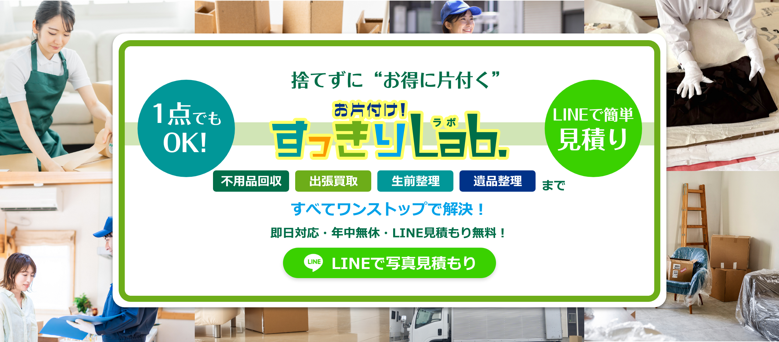 LINEでかんたん見積もり受付中! 事前説明・見積もり無料で安心!
