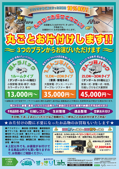 今だけ、チラシをご覧の方限定で丸ごとお片付けサービスが10%OFF!